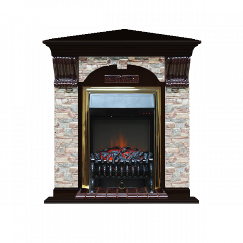 Каминокомплект Glenrich Арочный Грот цветной угловой (венге)+Fobos Brass